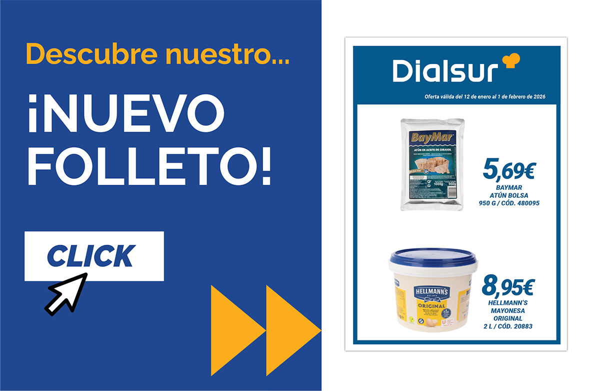 En Dialsur sabemos que cada euro cuenta en hostelería. Por eso, te ofrecemos promociones exclusivas en productos frescos, congelados, bebidas, limpieza y mucho más. Descubre descuentos pensados para profesionales y aprovecha nuestras ofertas para optimizar tu margen sin renunciar a la calidad.