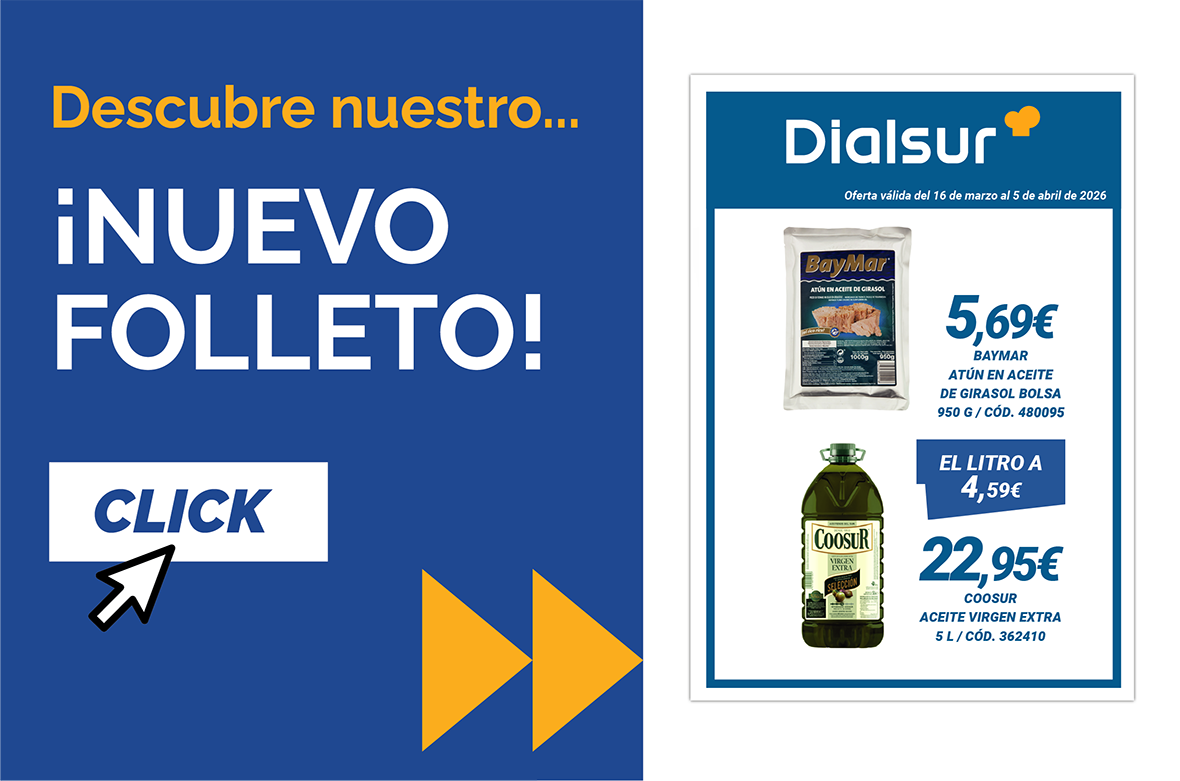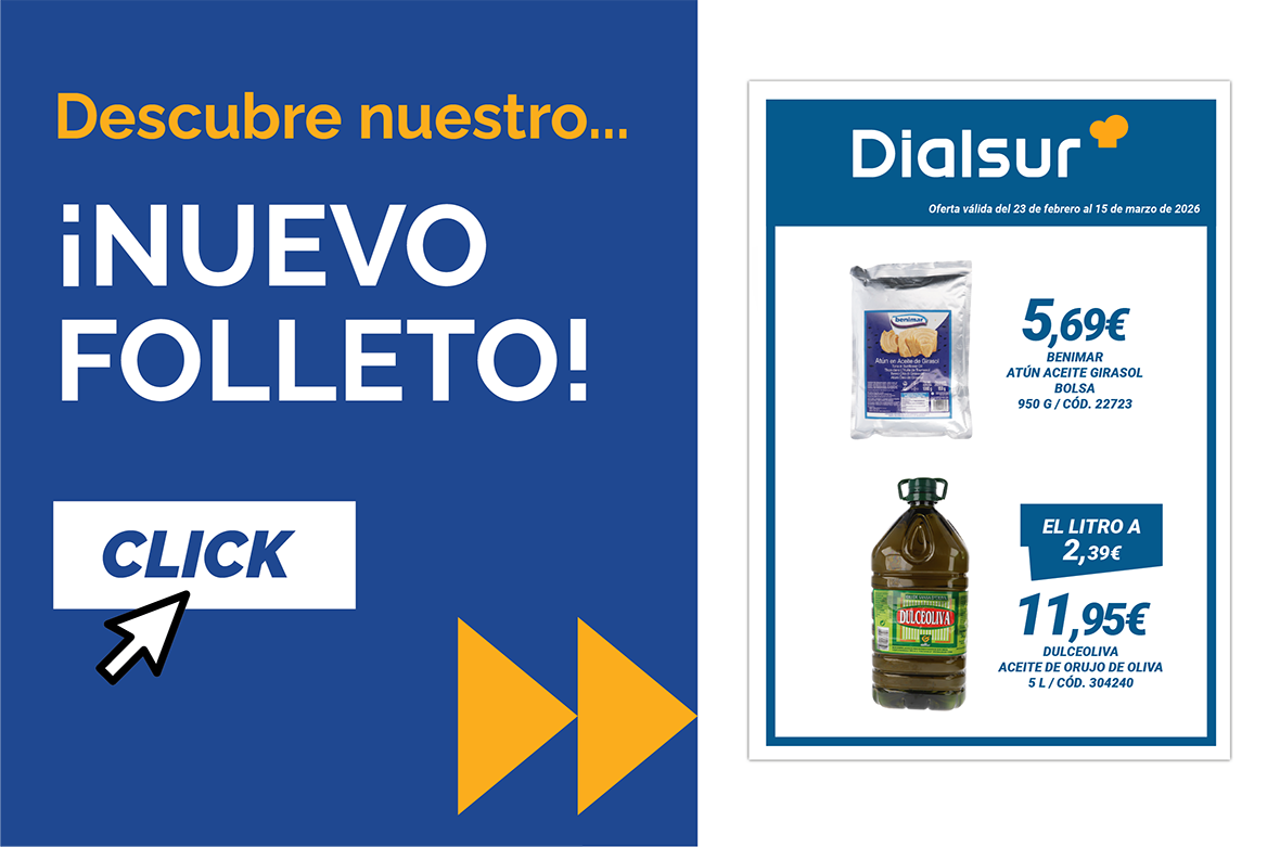 Consulta nuestro folleto y encuentra precios especiales en todas las secciones, disponibles en nuestros centros cash & carry Dialsur.